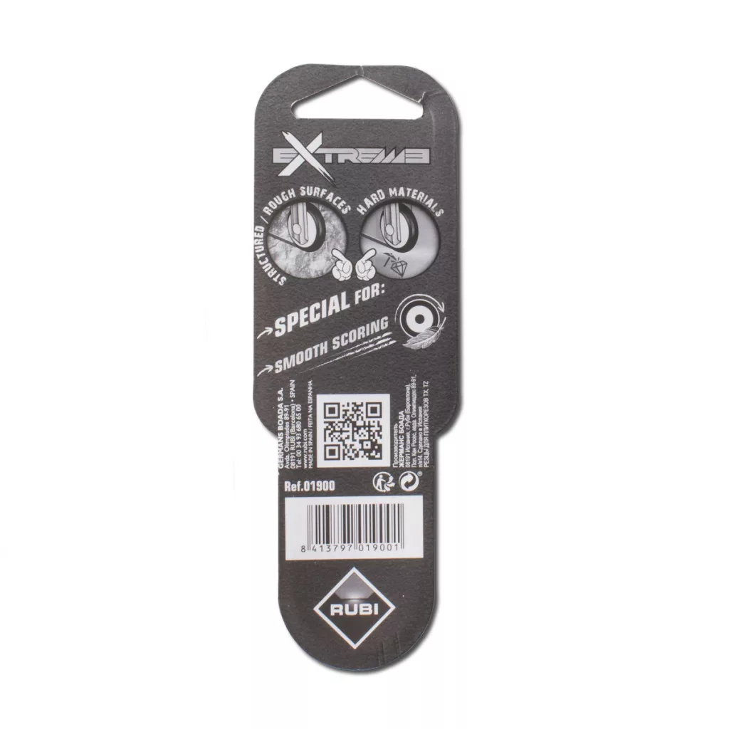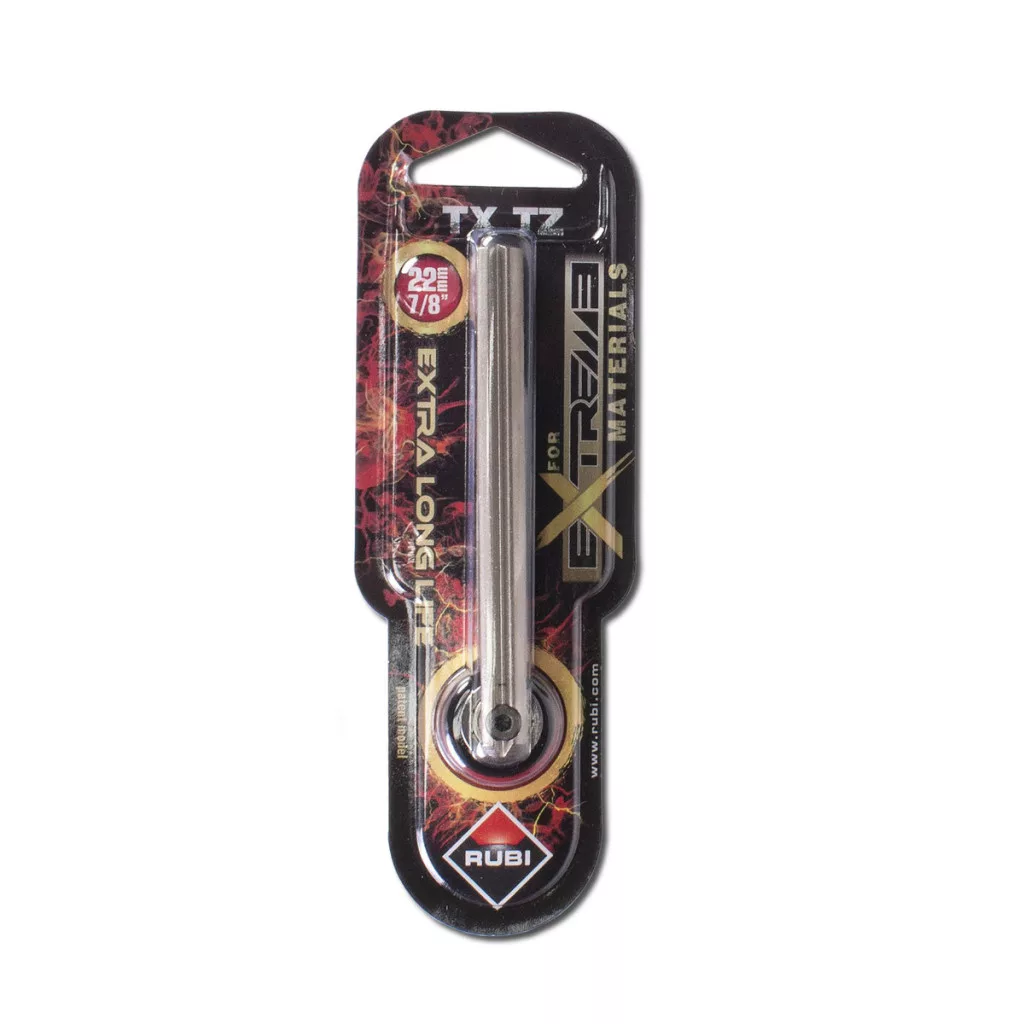 Rubi Plus Extreme csempavágó kerék és szár nagy keménységű kerámia lapok vágásához. TZ és TX-Max típusú csempevágó gépekhez. Volfrámkarbid csempevágó kerék titánium bevonattal. Nagy kopásállóság és hosszú élettartam jellemzi. Kerék átmérője: 22 mm